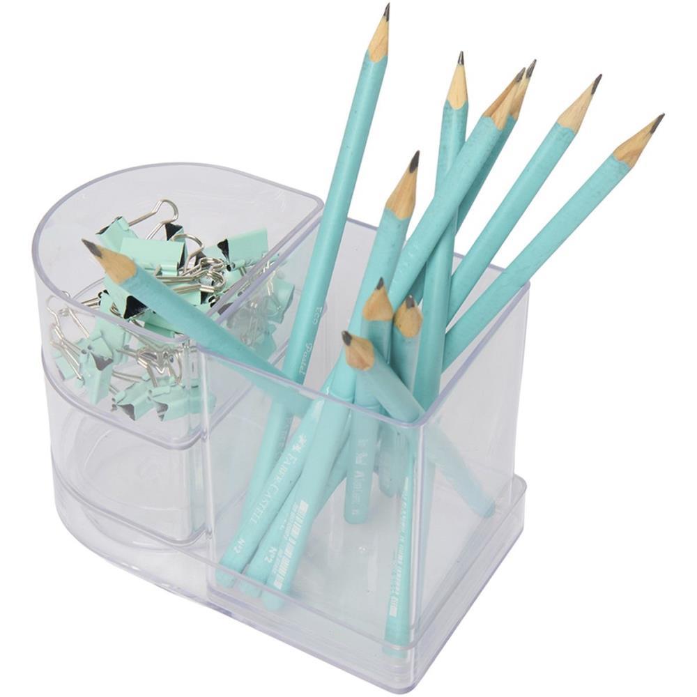 organizador de mesa, organizador compact, organizador cristal, organizador translúcido, acessório para escritório, kit organizador 4 peças, organizador polibras, organizador fosco, organizador home office, organizador de estudo