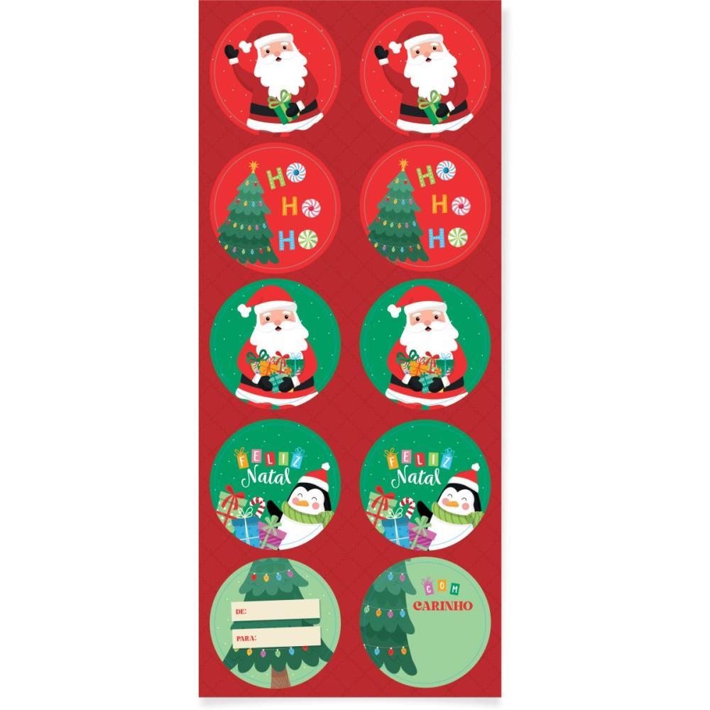 Com **formato redondo** e medidas de **10x23 cm**, cada cartela contém **10 adesivos** com diferentes estampas e mensagens natalinas. No blister, você recebe **3 cartelas (totalizando 30 adesivos)**, prontos para deixar a criatividade fluir. O produto é leve, prático e fácil de aplicar, ideal para quem deseja decorar de forma rápida e com ótimo custo-benefício. Basta destacar e colar para transformar simples presentes em **verdadeiras expressões de afeto e alegria**.
