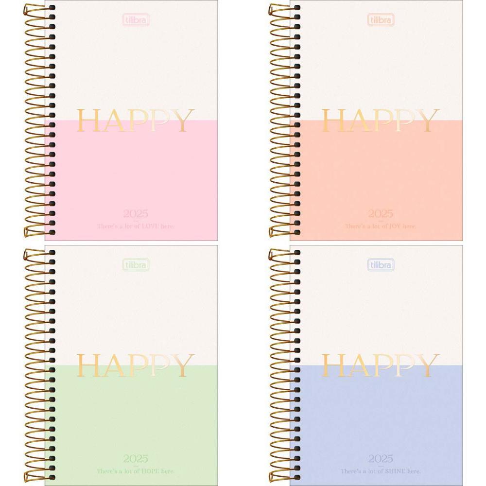 Imagine organizar seus dias com uma agenda que não só facilita sua vida, mas também traz um toque de beleza e inspiração a cada página. A Agenda 2025 Happy é perfeita para quem valoriza design delicado e funcionalidade. A nova coleção da Happy inova com combinações de tons pastel, criando um mix de cores suave e encantador, acompanhado de frases positivas que são parte essencial do DNA da marca.