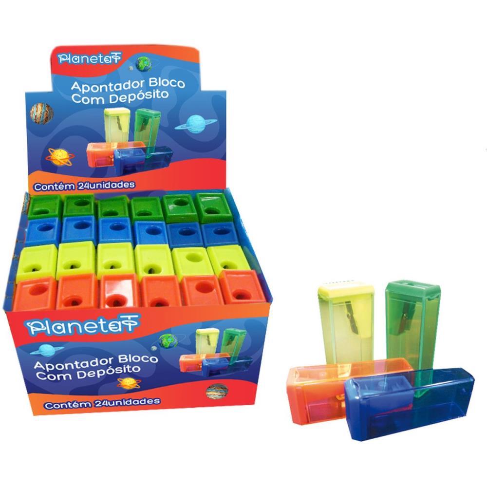 apontador com depósito, apontador bloco 4 cores, apontador prático, apontador com depósito removível, apontador escolar, apontador colorido, apontador de plástico, apontador de aço inox, apontador resistente, apontador com lâmina afiada, apontador para estudantes, apontador para escritório, caixa com 24 apontadores, materiais escolares, apontador para casa, acessório de escritório, apontador compacto, apontador durável, apontador eficiente