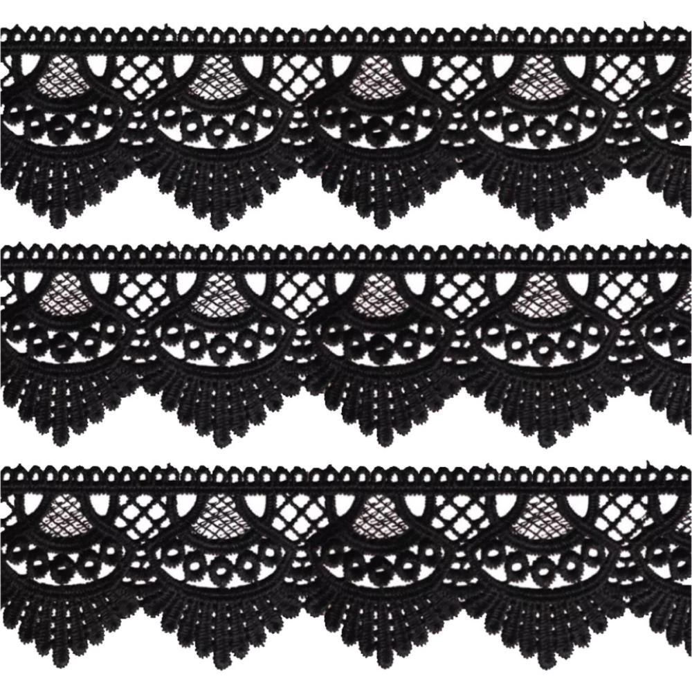 Guipir Poliester CHL-438 em rolo, cada pacote contem aproximadamente 13,7m 15Y de guipir com largura de 6,8cm. Indicado para vestidos de noiva e roupas formais, detalhes em blusas, saias e calcas, alem de acessorios como bolsas e sapatos. Tambem e popular na decoracao de casa, incluindo cortinas, toalhas de mesa e almofadas. A renda guipir e valorizada por sua durabilidade e pelo visual sofisticado que adiciona as pecas de vestuario e decoracao. Cor.: preto