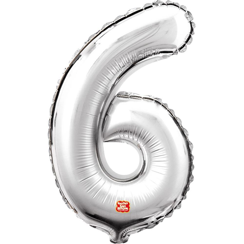 Balão Metalizado Número 6 Prata 40CM.