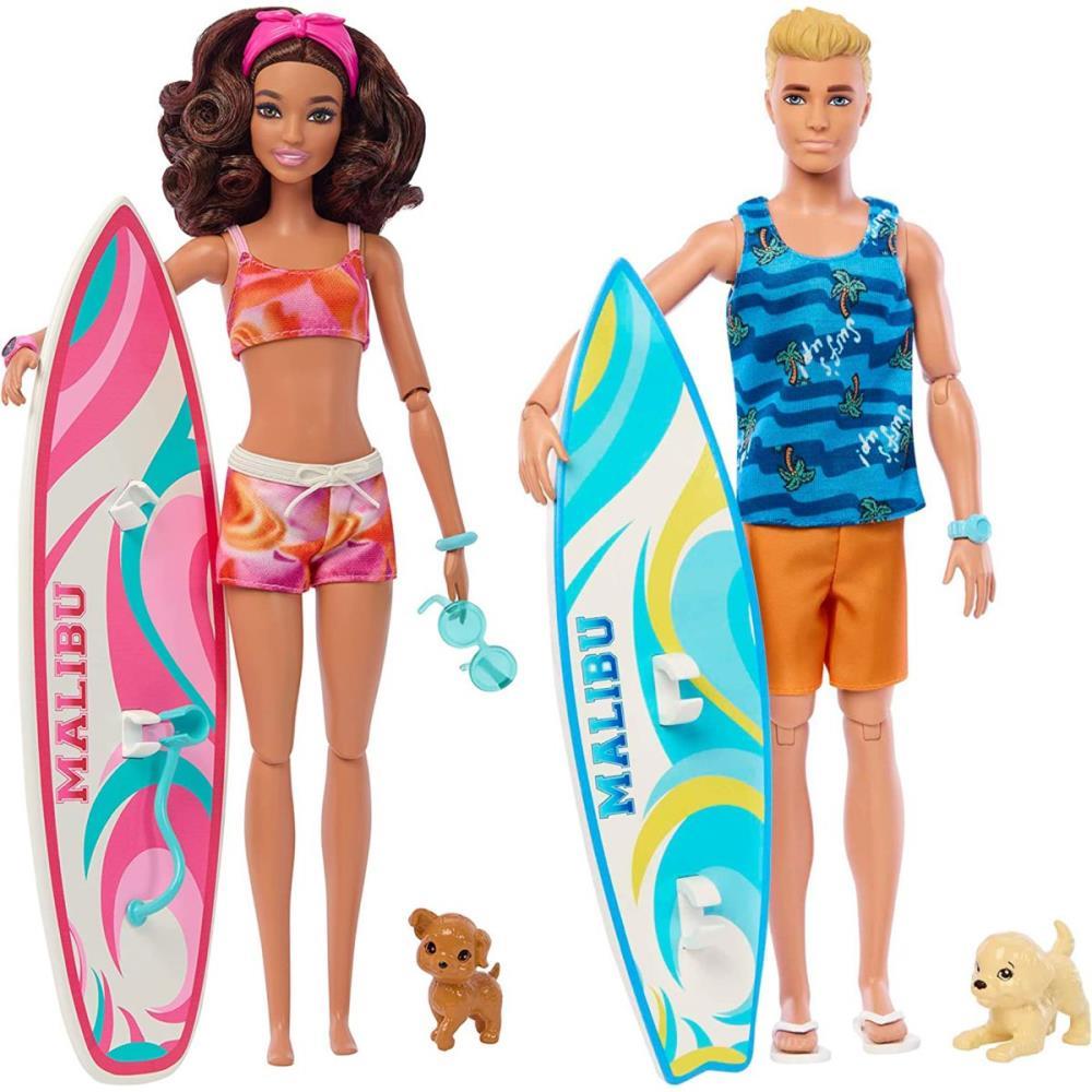 Pegue a onda perfeita com a Barbie! A Barbie e o Ken surfistas estão prontos para um dia na água salgada e sob o sol em Malibu, com as suas coloridas pranchas de surfe. Eles são articulados, usam uma roupa casual e vêm com toalha, cachorrinho de estimação e acessórios com tema de praia. As crianças podem colecioná-los para aventuras à beira-mar! Cada produto é vendido separadamente, sujeitos a disponibilidade. Os bonecos não ficam em pé sozinhos. As cores e as decorações podem variar.