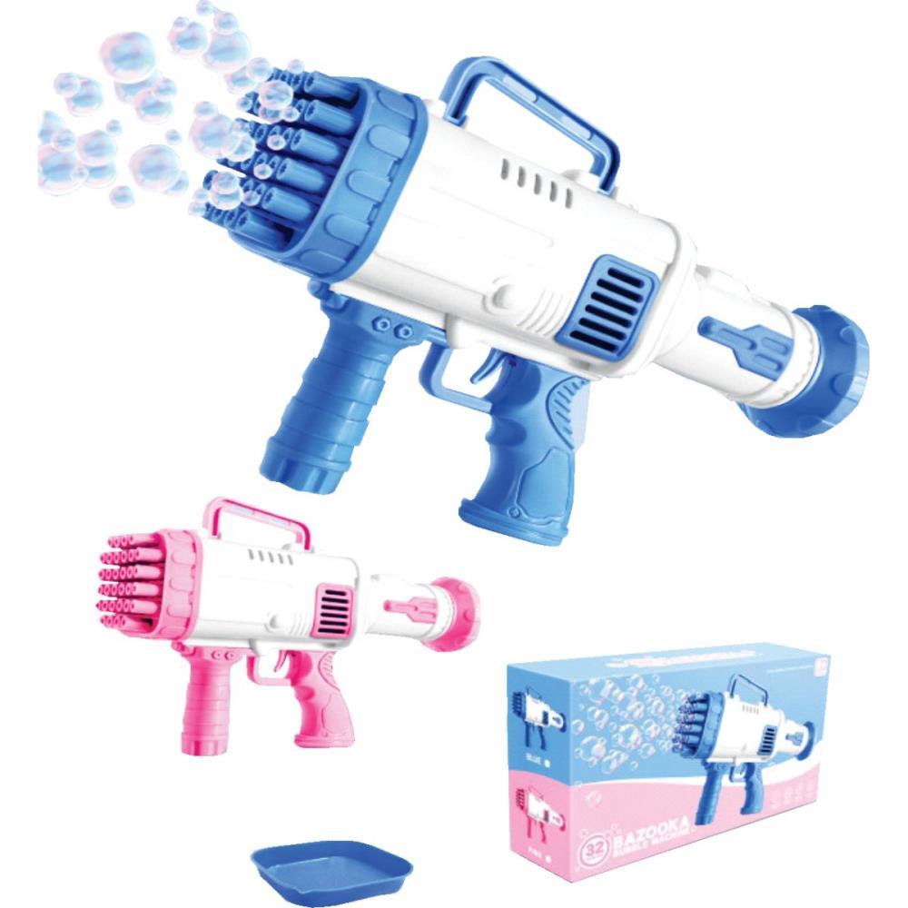 Com design moderno no formato de bazuca, a brincadeira ganha ainda mais emoção, pois basta apertar o gatilho para liberar centenas de bolhas de sabão em poucos segundos. As 32 saídas simultâneas garantem um espetáculo visual incrível, perfeito para aniversários, piqueniques, eventos escolares ou até mesmo sessões de fotos criativas.