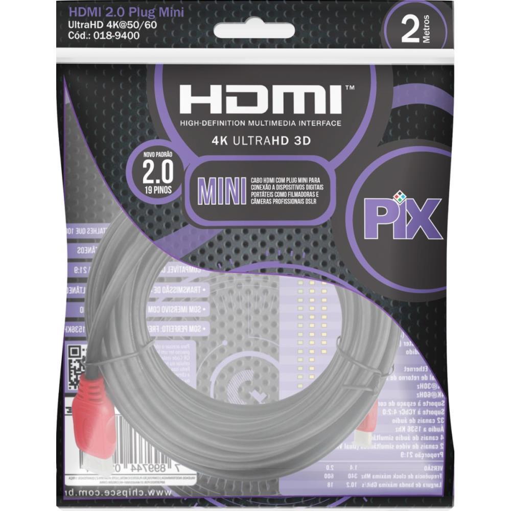 O Cabo HDMI Mini HDMI para HDMI 2.0 4K 2 Metros é a escolha perfeita para quem busca conectar dispositivos portáteis a monitores, televisores e projetores com máxima qualidade. Compatível com videogames, câmeras, Blu-ray, notebooks e consoles que utilizam entrada Mini HDMI, este cabo entrega imagens nítidas e som imersivo, atendendo aos mais exigentes padrões de qualidade.