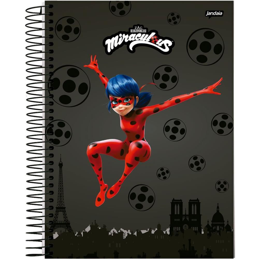 caderno Miraculous, caderno com capa dura, caderno escolar, caderno de anotações, caderno de desenho, caderno Jandaia, caderno para estudantes, caderno de 80 folhas, pacote de cadernos, material escolar, caderno para fãs de Miraculous, caderno com personagens, caderno de alta qualidade, caderno resistente, caderno de capa dura