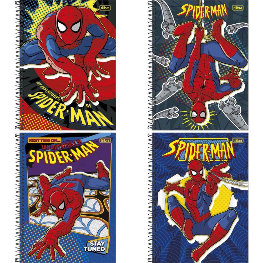 caderno 10x1, caderno Spider-Man, caderno capa dura, caderno 160 folhas, caderno escolar, caderno decorado, caderno com adesivos, caderno com espiral colorido, caderno para 10 matérias, caderno de super-herói, caderno TK Shopping, caderno com bolsa de papel, caderno divertido, caderno com capa metalizada, caderno para estudantes.