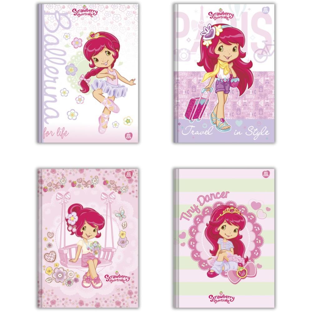 caderno brochurão, caderno moranguinho, caderno capa dura, caderno infantil, caderno com adesivos, caderno com glitter, caderno 80 folhas, caderno escolar, pacote com 05 cadernos