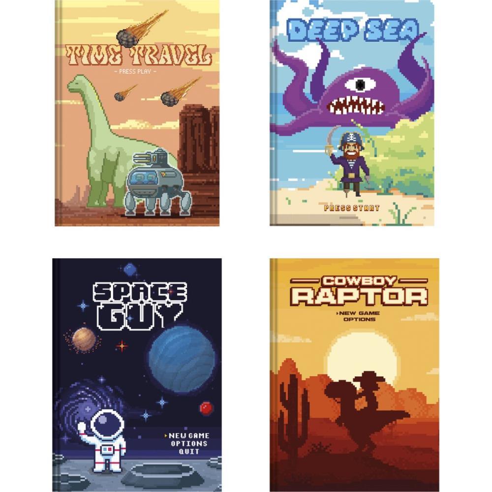caderno brochurão, caderno infantil, capa dura, Pixel Kraft, caderno escolar, TK Shopping
