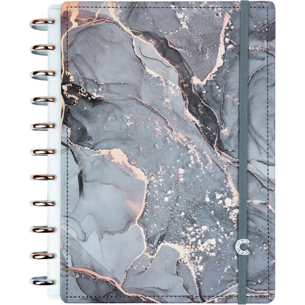 Este modelo faz parte da linha G+, que traz a **abundância dos discos G** - discos maiores que permitem o uso de mais folhas e acessórios sem comprometer a praticidade. Sua capa e contracapa rígidas com acabamento marmorizado em preto conferem um visual **sofisticado e elegante**, tornando o Onyx uma peça ideal para quem busca um caderno que alia design e funcionalidade.