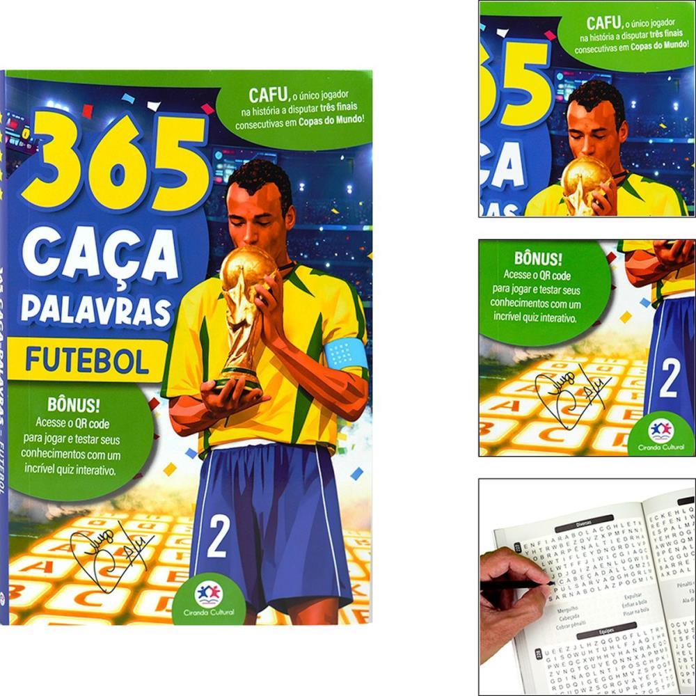 O livro 365 Caca-Palavras Futebol e a escolha perfeita para quem ama desafios e e apaixonado pelo universo do futebol. Com uma proposta envolvente, ele traz uma grande variedade de caca-palavras tematicos que estimulam o raciocinio, a concentracao e o vocabulario de forma divertida e dinamica. Inspirado em grandes nomes como Cafu, o conteudo conecta o leitor a emocao do esporte enquanto proporciona momentos de lazer inteligente. Ideal para todas as idades, e perfeito para relaxar, exercitar a mente e se entreter em qualquer lugar. Com um bonus interativo via QR code, a experiencia vai alem das paginas, tornando a diversao ainda mais completa. Um presente criativo para fas de futebol e amantes de desafios.