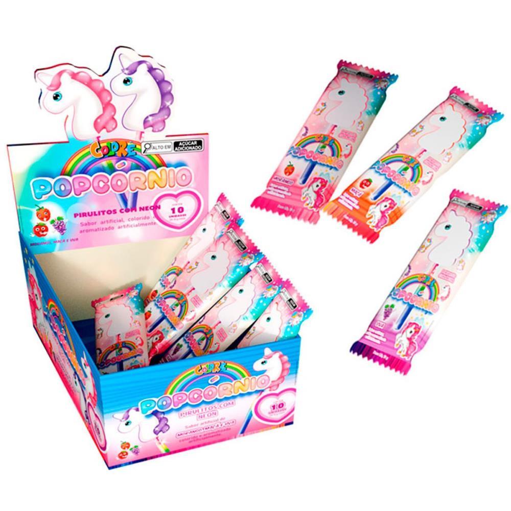 O Doce Popcornio Pirulito com Neon Sortido Display com 30 Unidades é a combinação perfeita de diversão e encanto! Inspirado no universo mágico dos unicórnios, este doce colorido vem acompanhado de um toque de brilho neon que fascina crianças e adultos. Com sabores sortidos de morango, maçã e uva, cada unidade oferece uma experiência deliciosa, alegre e luminosa.