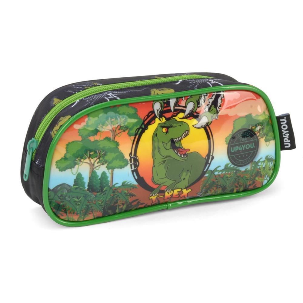 estojo escolar, estojo de tecido, estojo Up4You, estojo dinossauro, estojo com zíper, estojo preto, estojo infantil, estojo divertido, estojo resistente, estojo organizado, material escolar, acessórios escolares, estojo para crianças, TK Shopping, estojo de alta qualidade, estojo espaçoso, estojo para lápis e canetas, estojo com compartimento grande