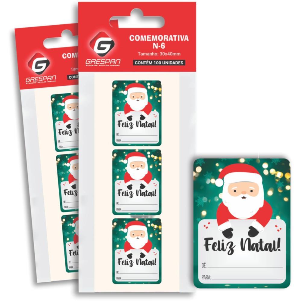Etiqueta para Presente DE/PARA Feliz Natal Retang Pacote com 100