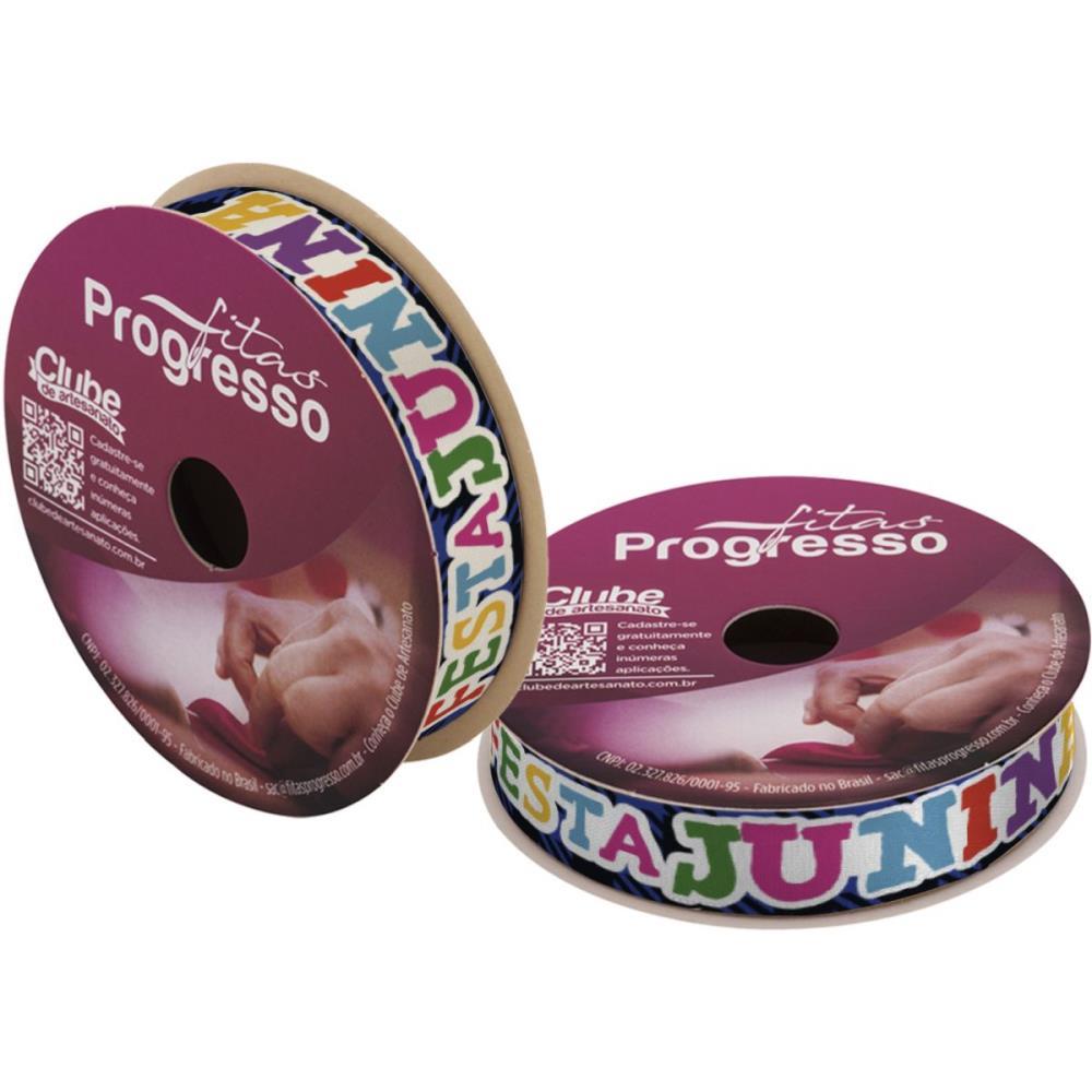 Festa Junina Fita Cetim 15mmx10metros. Frases Azul - Fitas Progresso