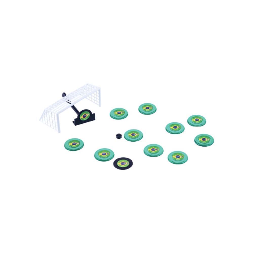 O kit inclui 10 botões, 1 goleiro, 1 trave, 2 bolas e adesivos para personalizar seus jogadores, proporcionando uma experiência completa e autêntica de futebol de botão. Com a embalagem em solapa, o Futebol de Botão Festival Brasil é fácil de transportar e guardar, perfeito para levar a diversão a qualquer lugar.