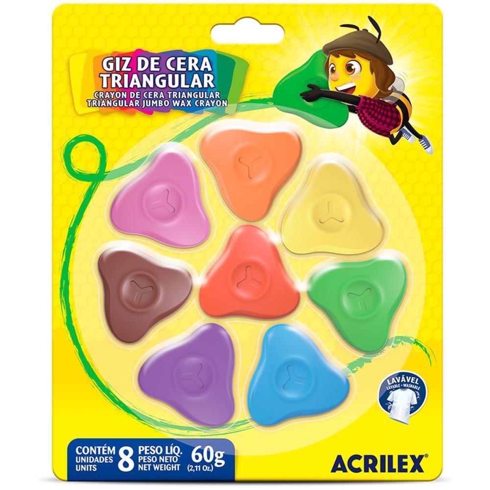 Giz de Cera Fino 08 Cores Triangular CX com 06