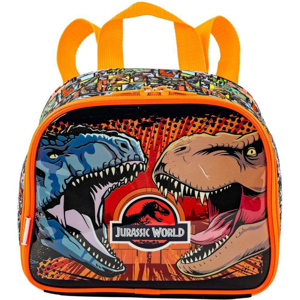No mundo onde os dinossauros estao a solta, a batalha entre os maiores seres do planeta vai comecar! E a lancheira da colecao oficial Jurassic World tem revestimento interno facil de limpar e resistente a liquidos, alca de costas com ajuste e alca carona, para levar no carrinho da mochila.
