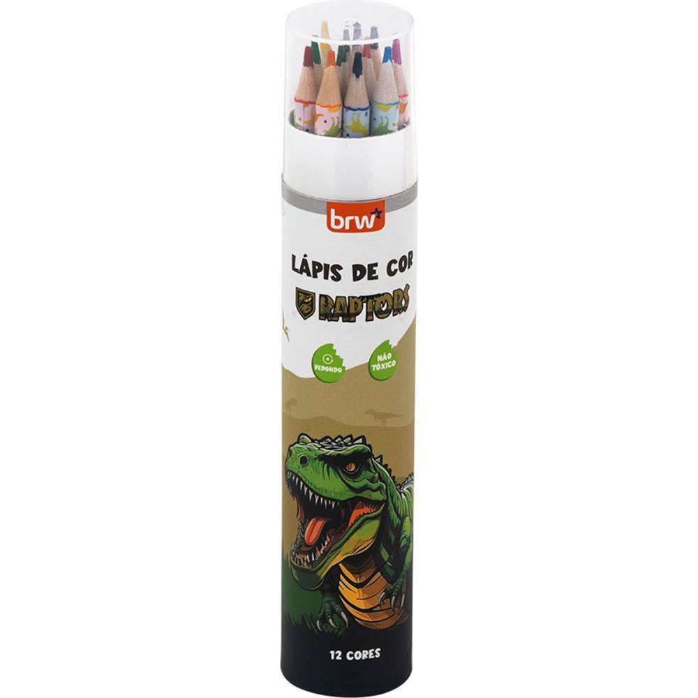 O LAPIS DE COR REDONDO RAPTOR RESINA 12 CORES DA BRW, POSSUI CORPO ESTAMPADO NO TEMA DA COLECAO DINOSSAURO. EMBALAGEM DIFERENCIADA, PRESENTEAVEL. MINA DE 2,5MM MACIA E CORES VIBRANTES. MEDIDA EM CM: 18,5X3,0