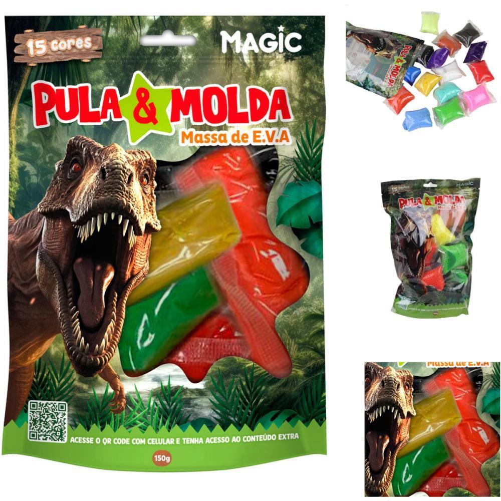 massa para modelar, massa que pula, dinossauros, kit de modelar, 15 cores de massa, brinquedo educativo, criatividade infantil, atividade lúdica, TK Shopping.
