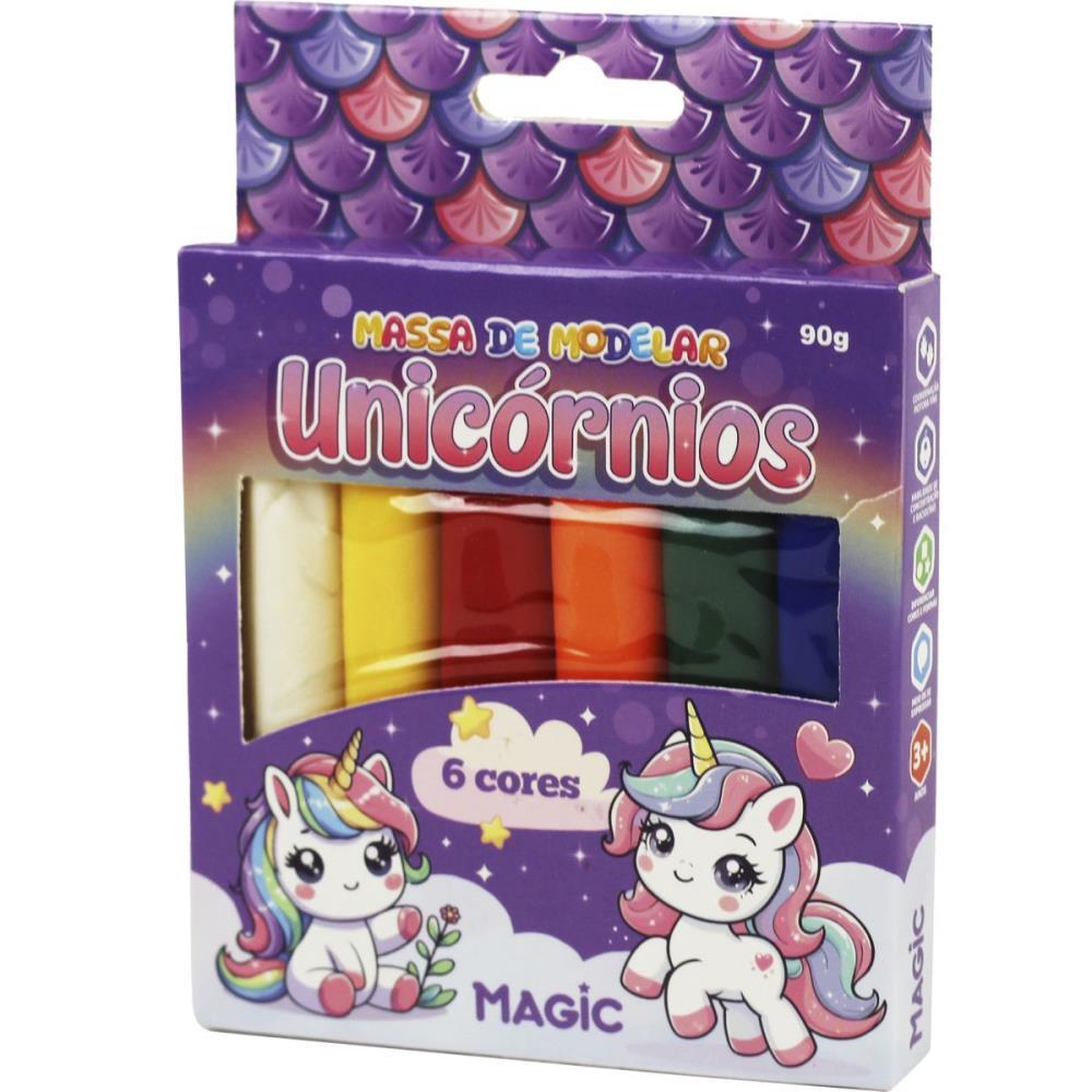 massa para modelar, unicórnios, kit de modelar, 6 cores de massa, brinquedo educativo, criatividade infantil, atividade lúdica, TK Shopping.