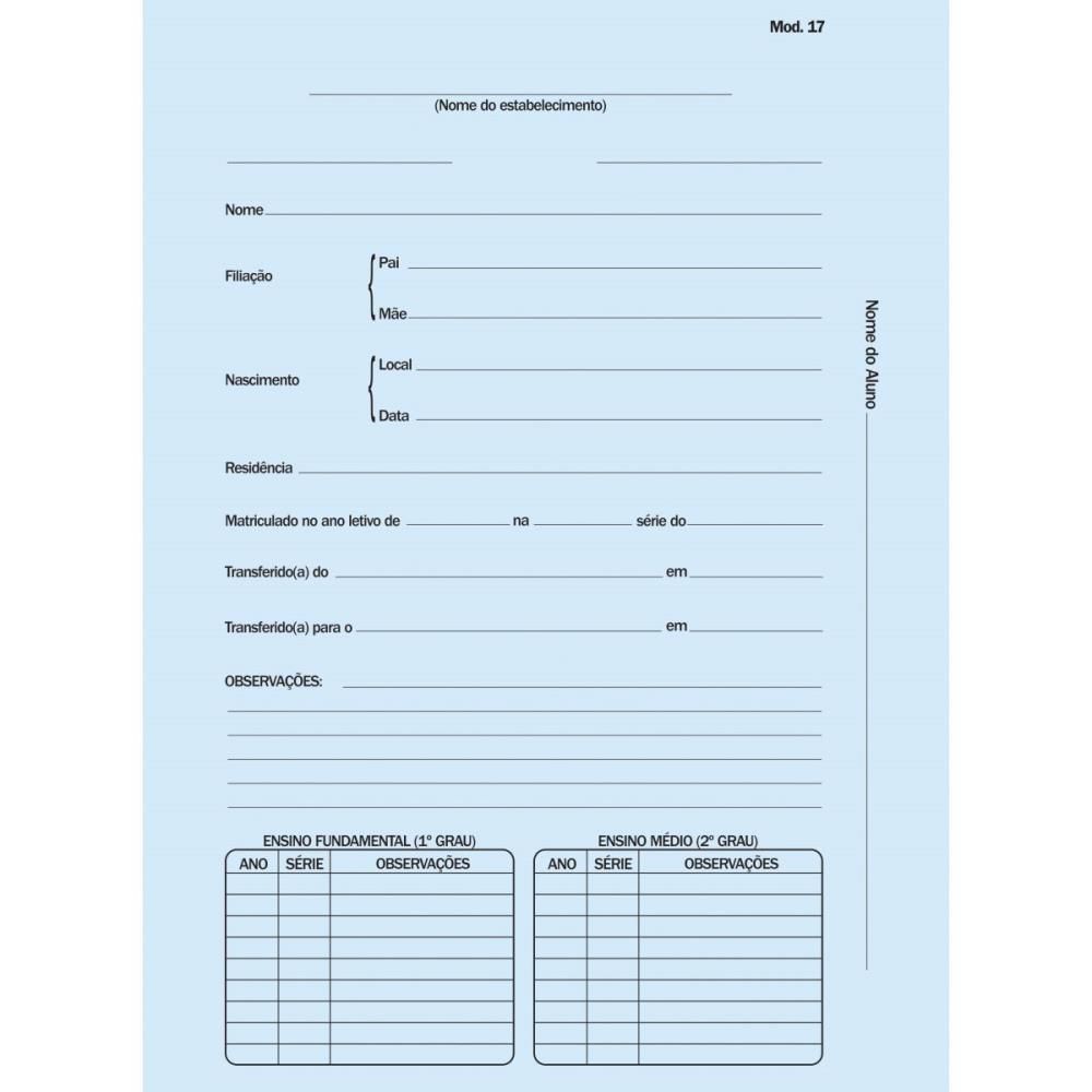 A Pasta do Aluno Modelo 17 destaca-se pela facilidade de uso e manuseio, permitindo que os documentos sejam facilmente acessados e organizados. Sua cor azul adiciona um toque profissional e facilita a identificação entre outras pastas ou materiais escolares.