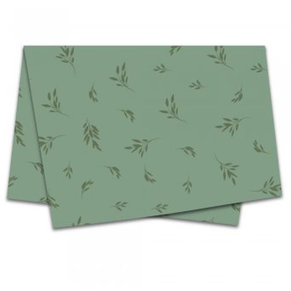 A estampa Foglia traz pequenos galhos em verde escuro com toque de leveza no fundo verde salcia.