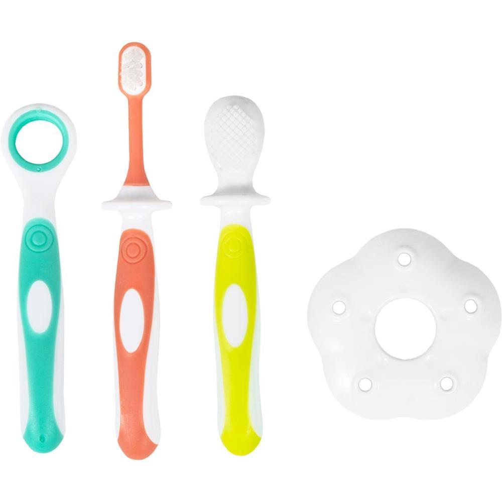 kit higiene bucal para bebê, higiene bucal bebê, limpador de língua para bebê, escova de dente bebê, massageador de gengiva, cerdas macias bebê, protetor de escova para bebê, cuidados bucais para bebês, kit bucal completo, limpeza bucal segura, saúde bucal infantil, primeiros cuidados bucais, produtos de higiene para bebê, kit de escova de dente bebê, silicone seguro para bebês, produtos para dentição, kit de higiene infantil, acessórios de higiene para bebês, kit bucal prático, higiene bucal em blister, limpeza bucal diária para bebês, acessórios para higiene do bebê.
