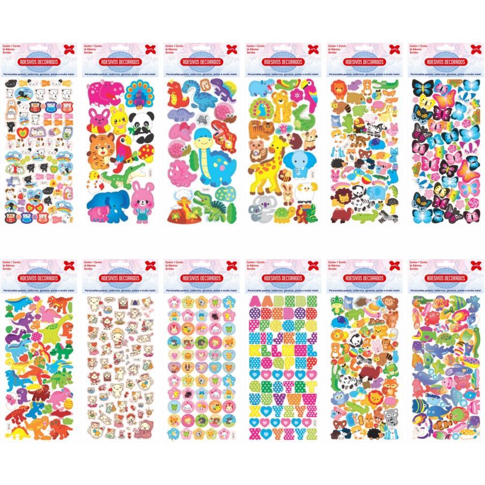 adesivos decorados, adesivos de animais, cartela de adesivos, adesivos para crianças, adesivos para decorar, adesivos para cadernos, TK Shopping, adesivos para scrapbooking, adesivos autocolantes, cartelas sortidas de adesivos