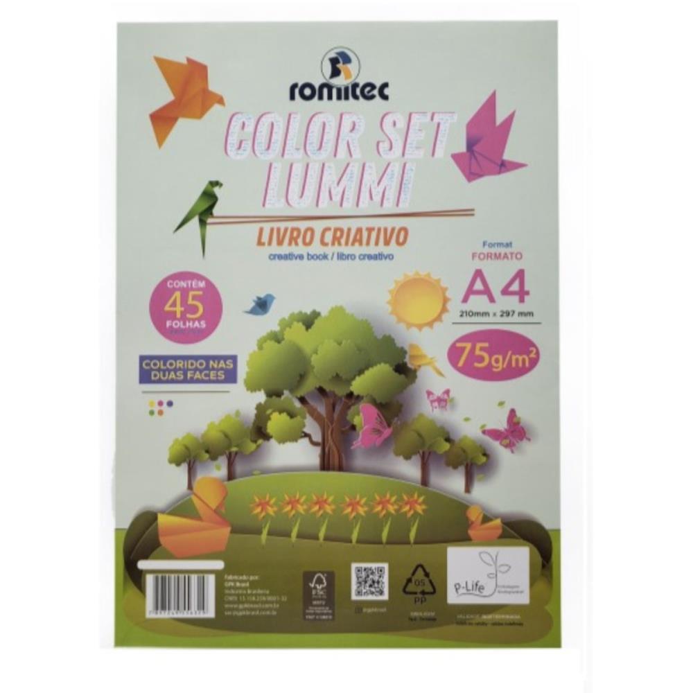 livro criativo, bloco para educação artística, Lummi, papel fluorescente, atividades escolares, recorte e colagem, dobradura, educação infantil, gramatura 75g, papel reciclável, sustentabilidade, criatividade para crianças, atividades lúdicas, papel fluorescente reciclável, materiais pedagógicos, papel colorido, atividades artísticas, material escolar, livro de atividades criativas, blocos artísticos.