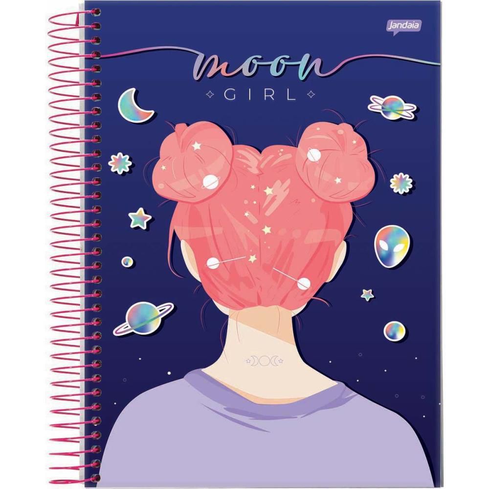 Caderno 20x1 Capa Dura It Girl 400 Folhas - Jandaia, Bolso em papel, cartela de adesivos, capa com laminacao brilho .