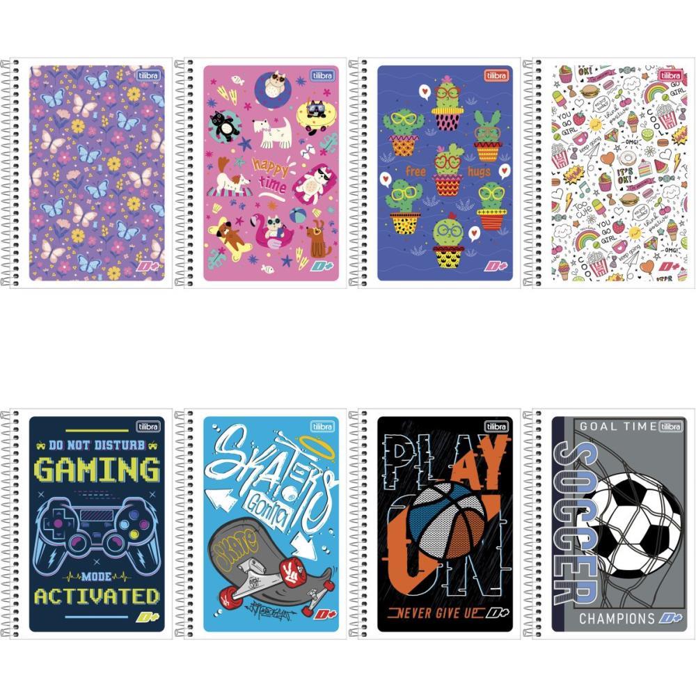 caderno espiral, 1/4, flexível, D+, 96 folhas, TK Shopping, estampas, masculino, feminino, escolar, profissional