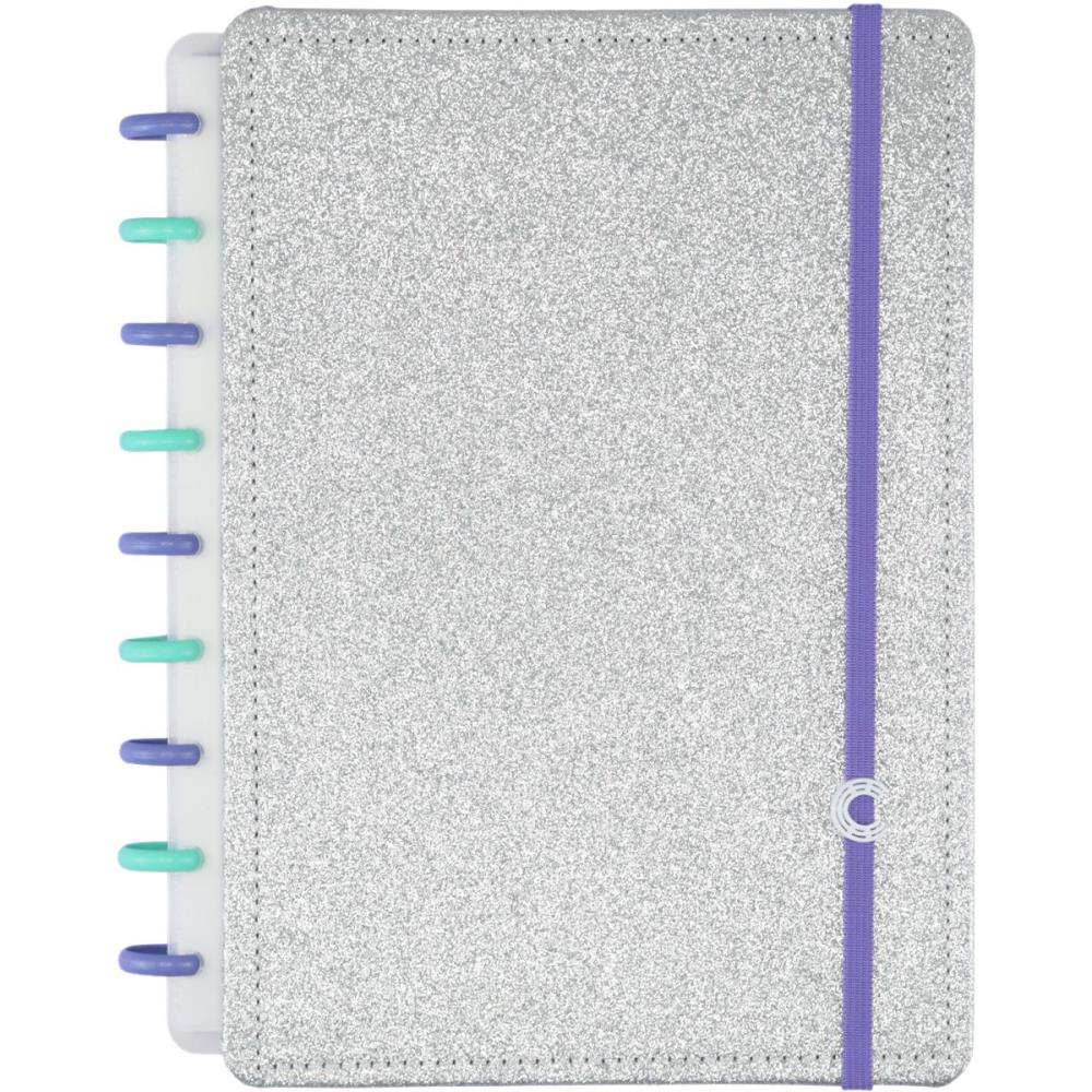 caderno inteligente, caderno glitter, caderno prateado, caderno personalizável, caderno removível, caderno médio, caderno prático, caderno TK Shopping, caderno escolar, caderno prata, caderno 2.0, caderno com glitter prateado