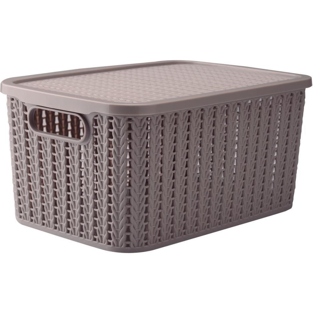 Caixa de Plastico Retangular Organizadora 4,7 L com Tampa e Pegador Trama preta.