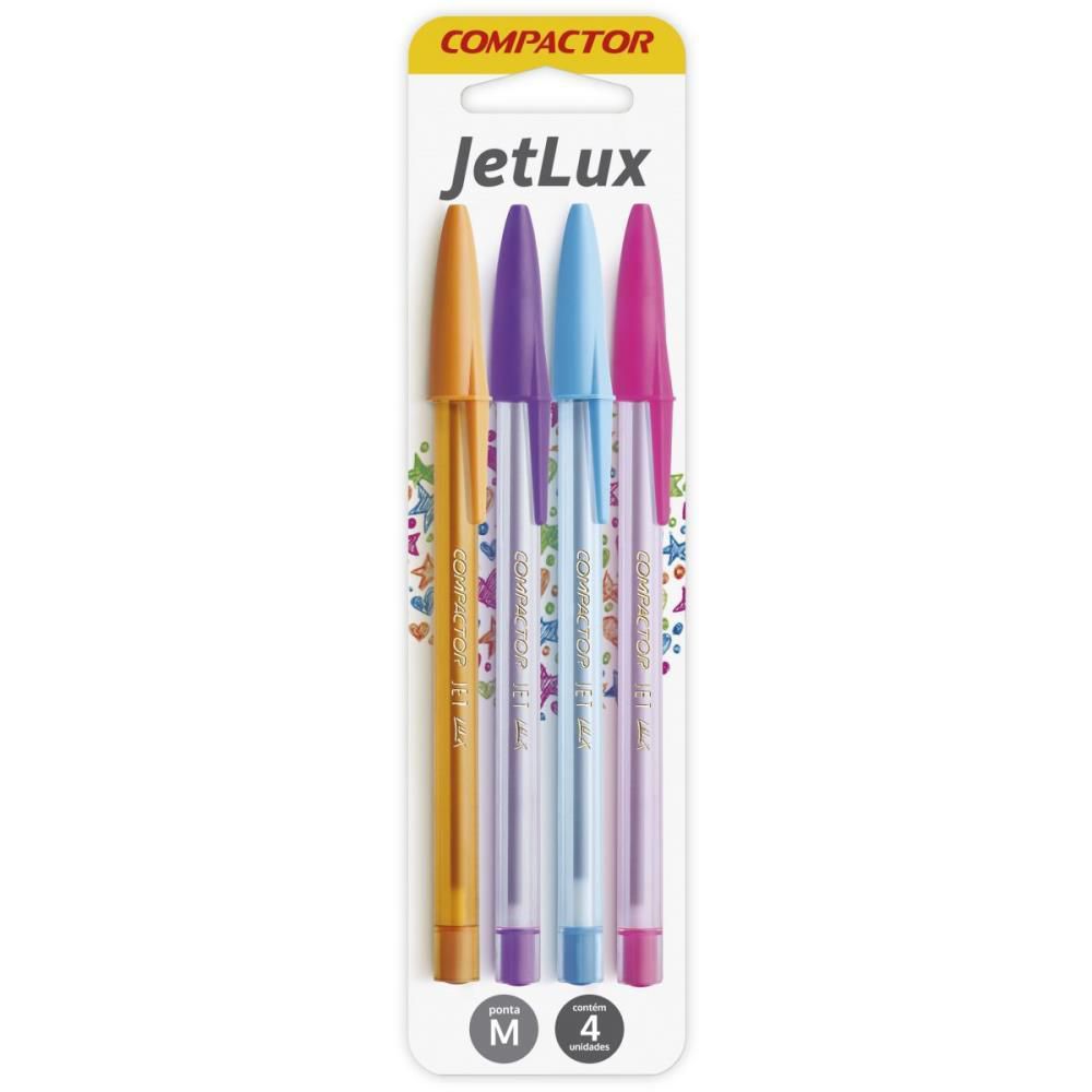 caneta esferográfica, Jet Lux, 4 cores, Compactor, preta, vermelha, azul, rosa, TK Shopping