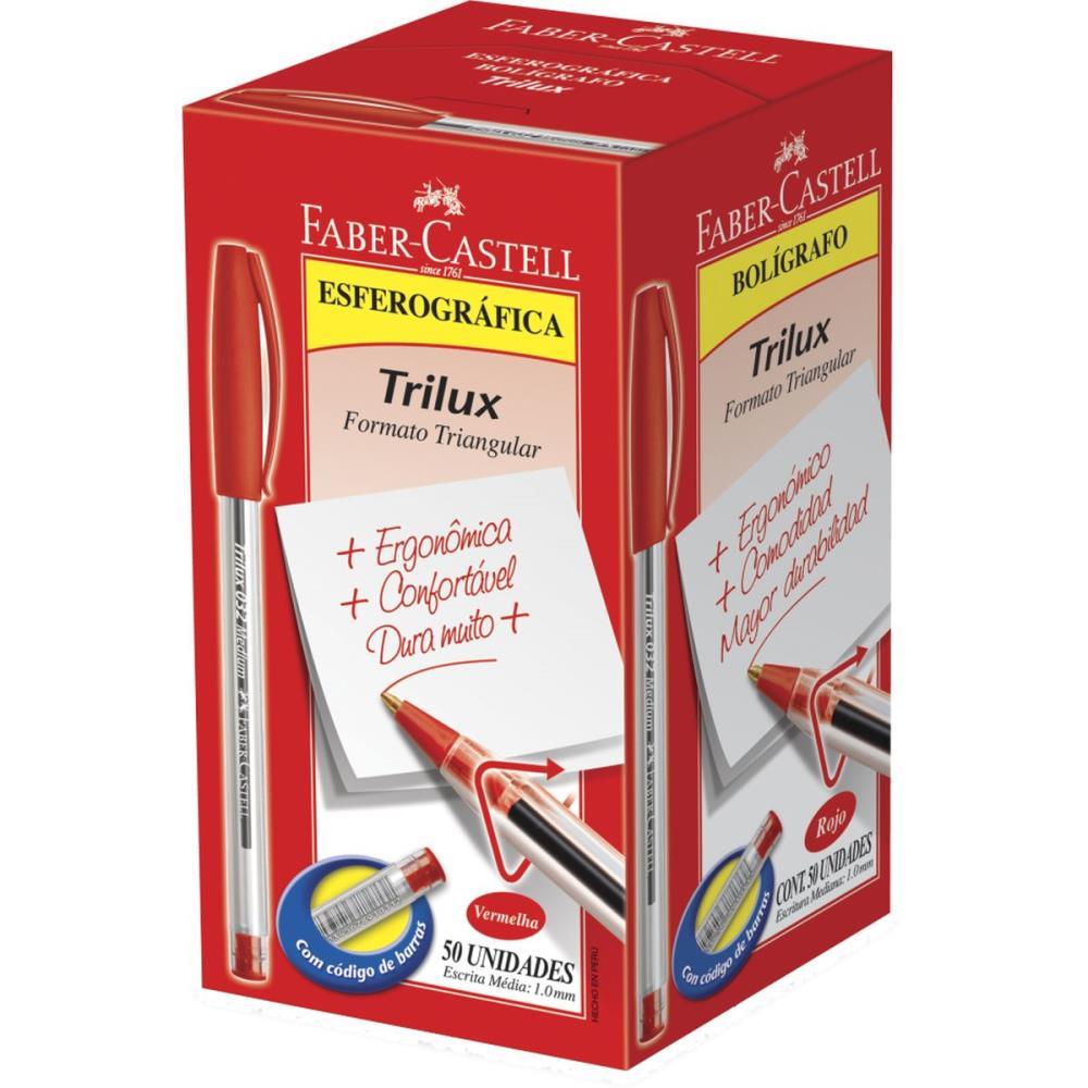 caneta esferográfica, caneta trilux, caneta ponta média, caneta vermelha, caneta ergonômica, caneta para correções, caixa com 50 canetas, escrita suave, caneta atóxica, caneta para escritório
