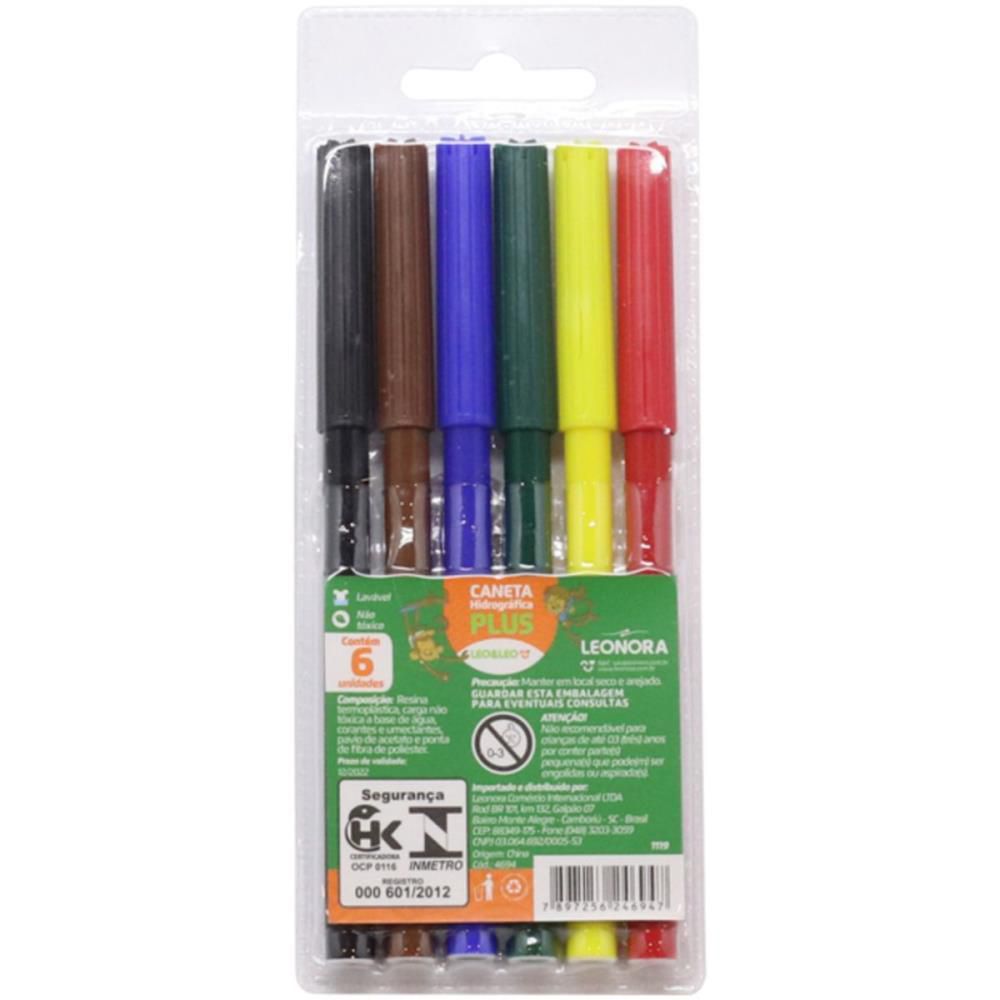 Caneta Hidrográfica Léo e Léo 6 Cores PLUS PCT com 24