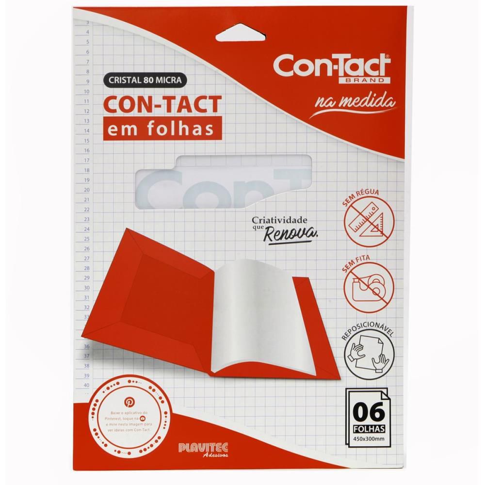 Cada embalagem contém seis folhas de 450mm x 300mm, o tamanho ideal para encapar materiais escolares. Sem excessos e sem complicação!