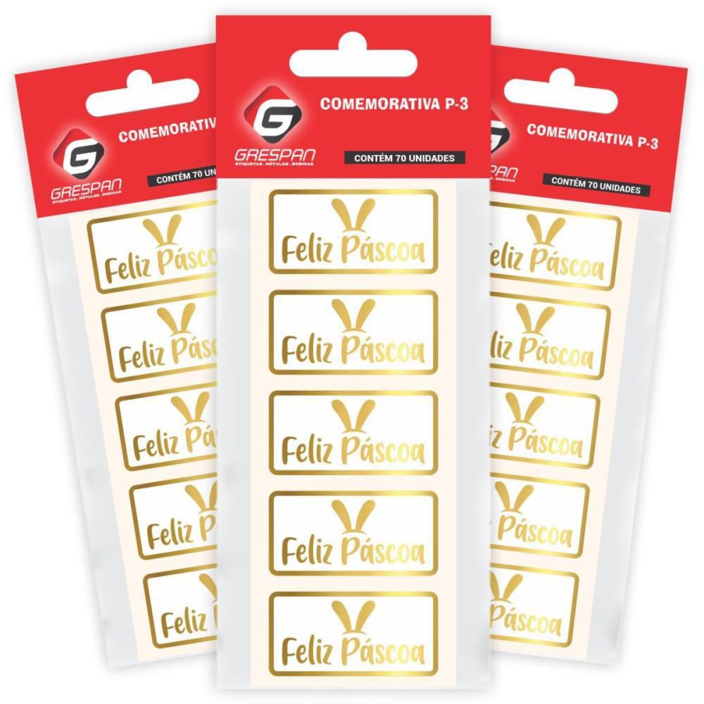 Etiqueta para Páscoa Feliz Páscoa Dourado Retang CTCOM 70