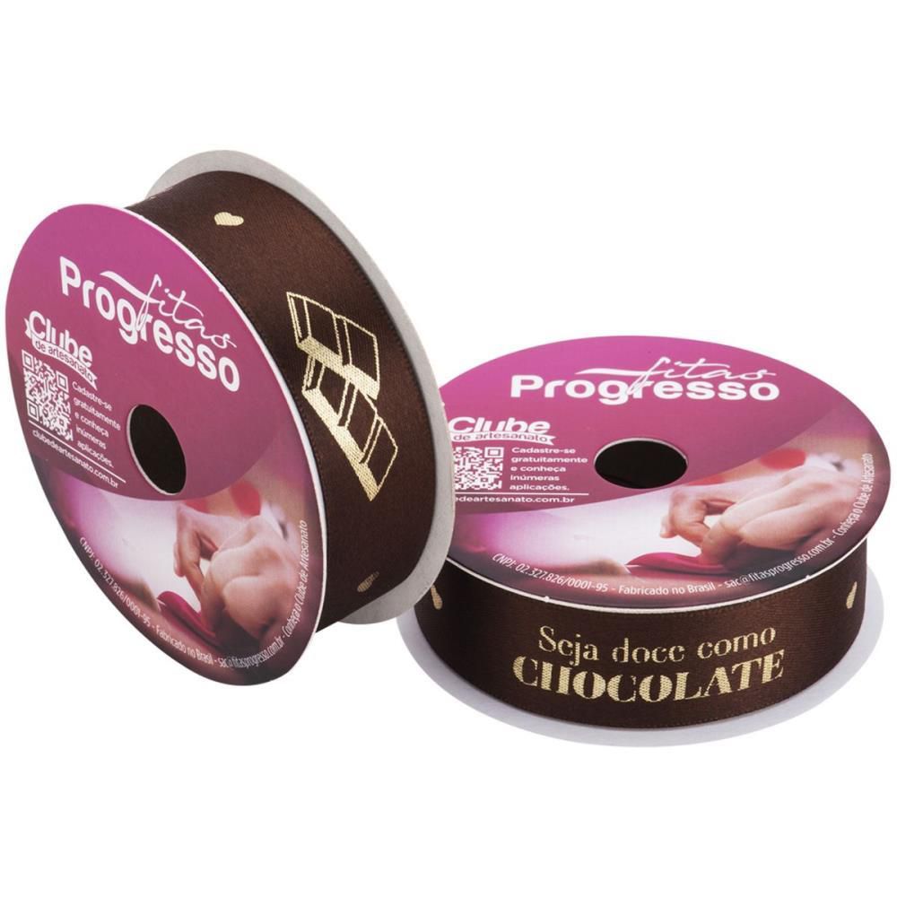Fita De Cetim Decorada 22 Mm X 10 Metros Frases Barra De Chocolate - Fitas Progresso