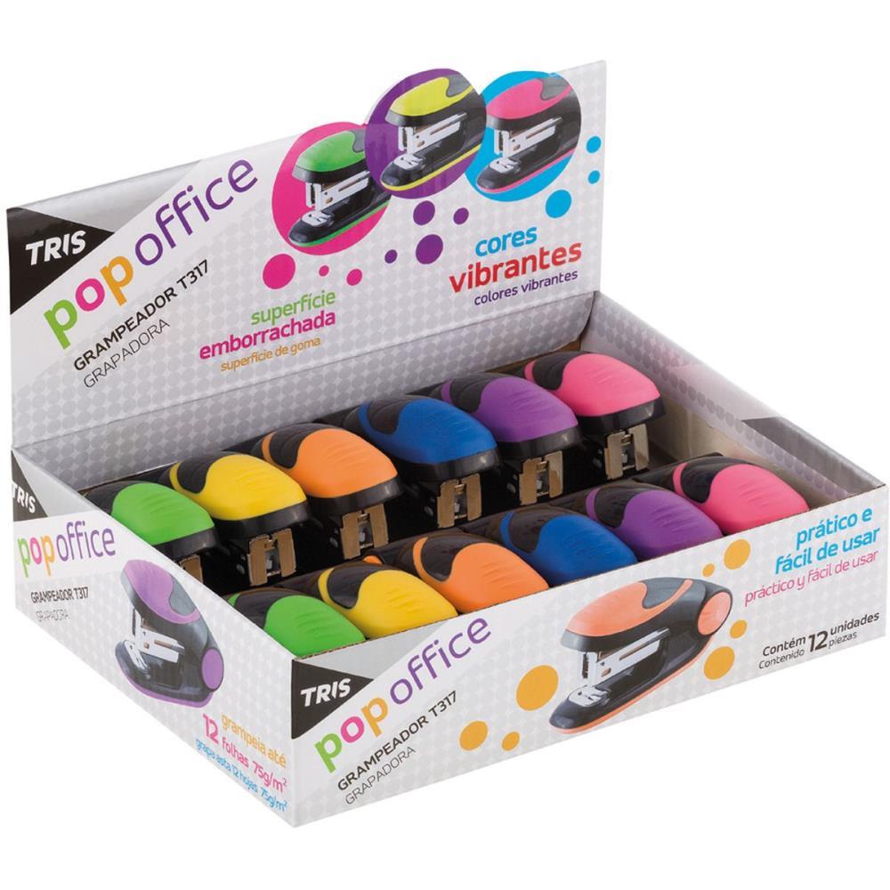 grampeador Tris, grampeador plástico, Tris T317, grampeador colorido, grampeador para 12 folhas, grampeador 26/6