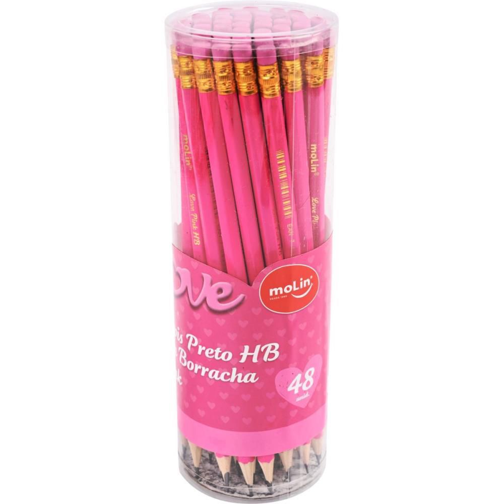 Lapis Preto Redondo Love Pink Hb Com Borracha - Molin