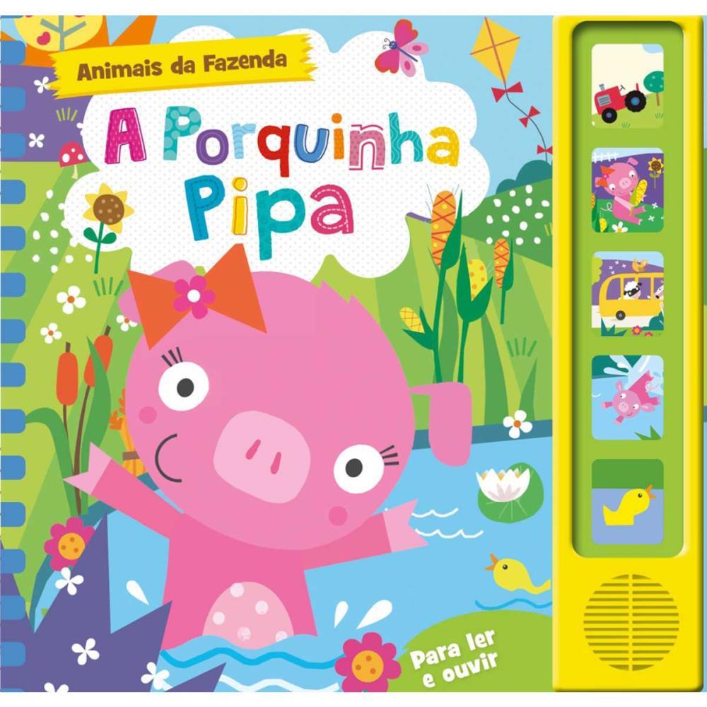 livro sonoro, livro infantil, Porquinha Pipa, livro interativo, livro com som, livro educativo, livro para crianças, livro de história, livro com botões sonoros, livro de 6 páginas, livro 19x19 cm, livro colorido, livro resistente, desenvolvimento infantil, livro para estimular imaginação, livro para estimular coordenação motora, livro divertido, presente para crianças, livro de contos infantis