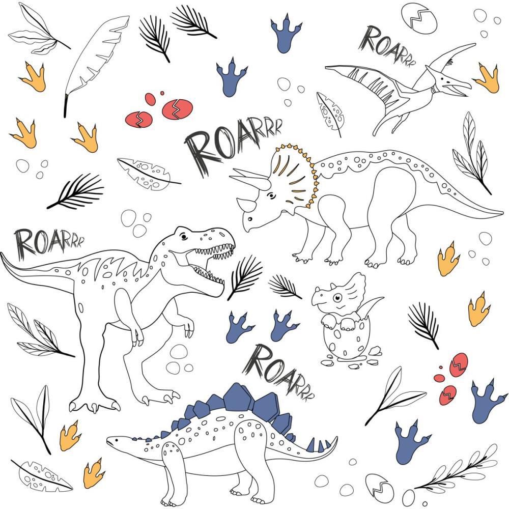 Papel de Parede Plástico Adesivo 45CMX10M para Colorir Dino 0,80