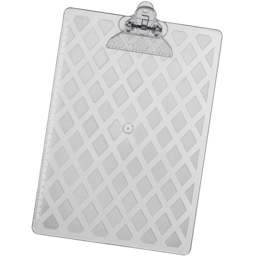 Com um design transparente e moderno, seu corpo possui detalhes em losango que conferem um toque sofisticado. O prendedor transparente garante fixação firme das folhas, evitando que se soltem. Fabricada em poliestireno injetado, a prancheta é altamente resistente, proporcionando durabilidade e segurança para o dia a dia.