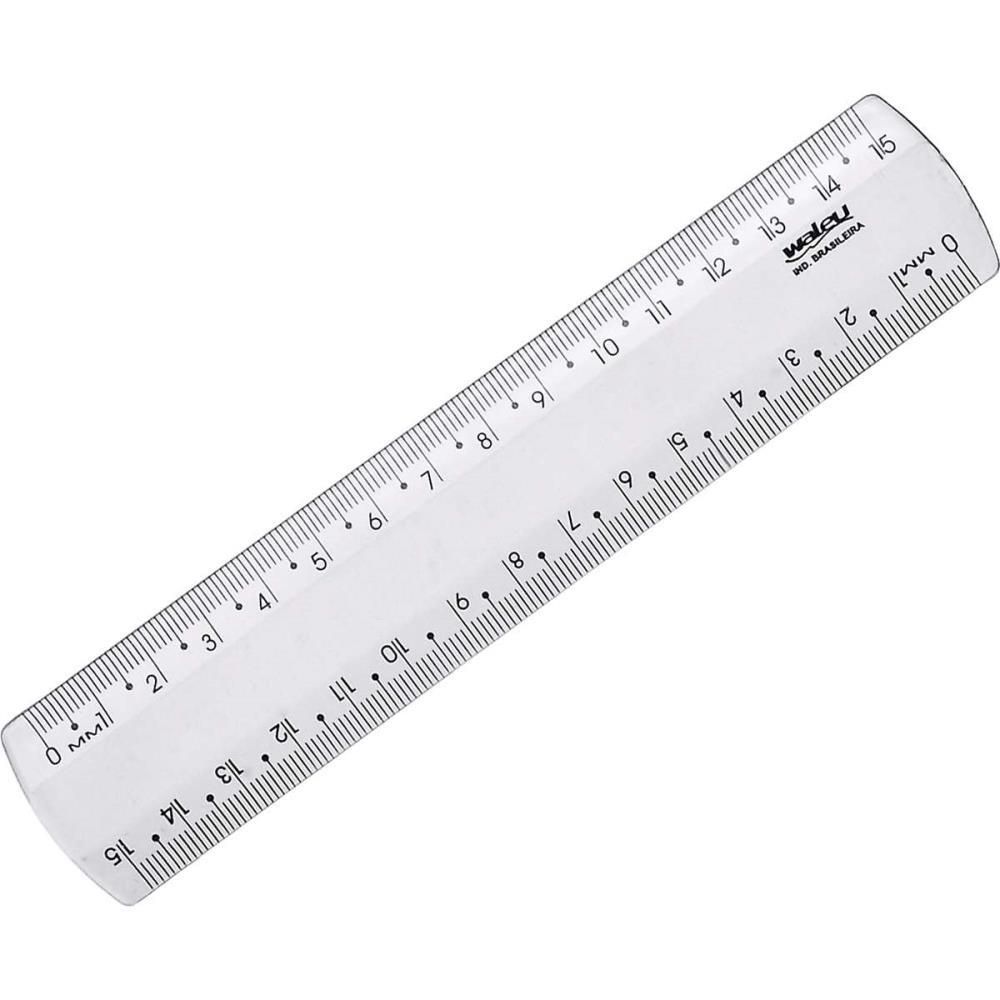 Régua de Poliestireno, Régua Transparente, Régua 15cm, Waleu, New Line Cristal, Medição Precisa, Régua Escolar, Régua Profissional, Ferramenta de Medição