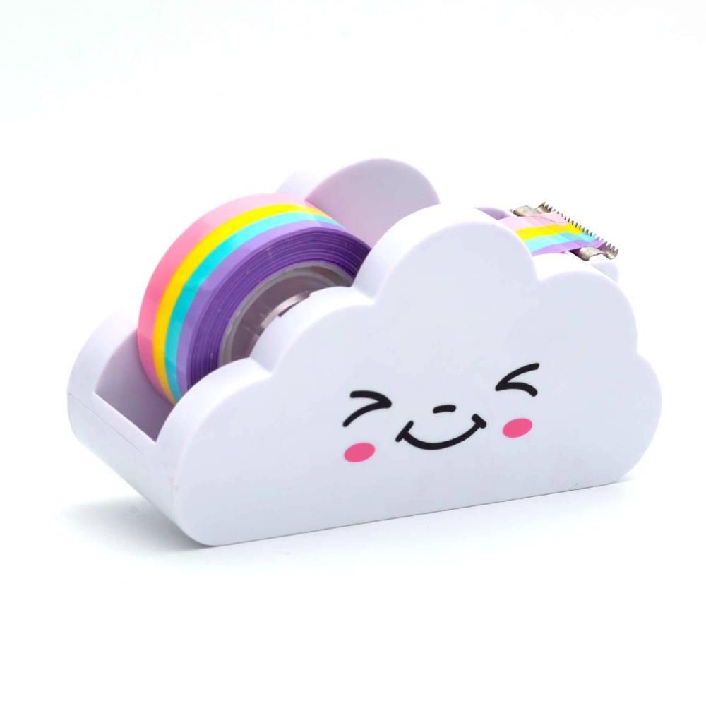 Dispenser para fitas Plastcover, diferenciado e divertido esse dispenser e ideal para quem quer chamar a atencao, seu design de nuvem traz seu aspecto unico. Ja vem com uma fita adesiva arco iris e pode ser utilizado juntamente com toda a linha de Washi Tape Plastcover.