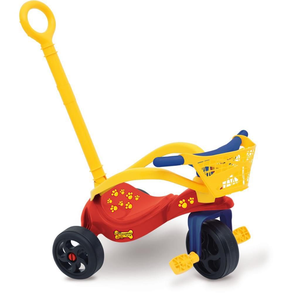 triciclo infantil, triciclo com empurrador, triciclo com protetor, triciclo com cesta, triciclo cachorrinho, triciclo seguro, brinquedo para crianças, triciclo divertido, transporte para crianças, segurança infantil