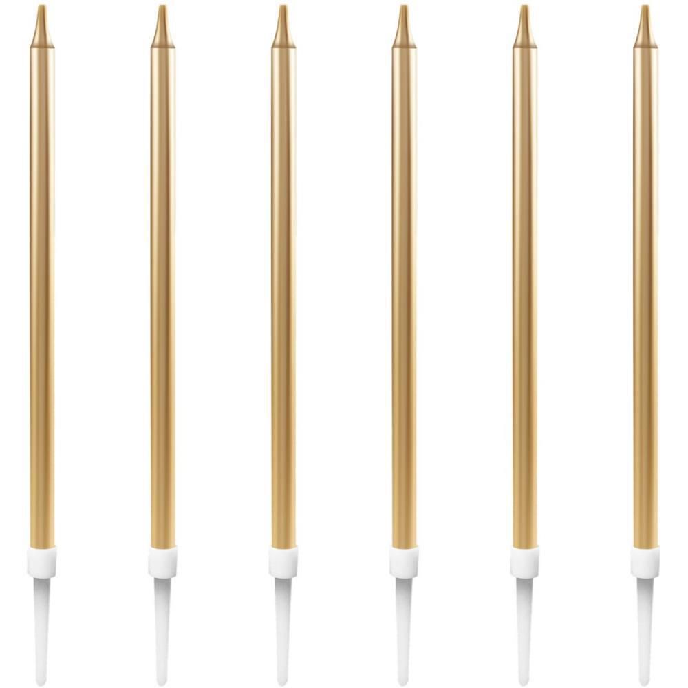 Pesquisa: vela | aniversário | palito | dourada | grande | 13cm | 06 unidades
